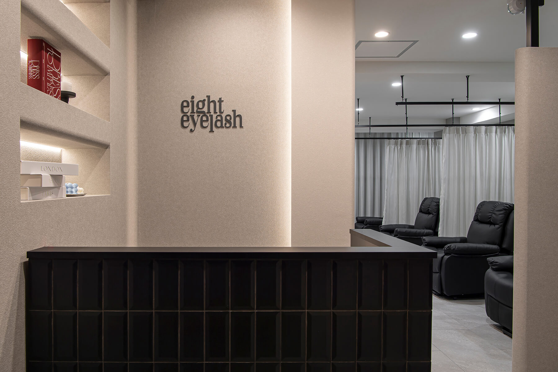シーンの画一的なインテリアにとらわれないスタイルは美容室をはじめエステ、ネイル、アイラッシュそしてクリニック分野へと支持を広げ、現在年間約300サロンの新装工事を手がけています。